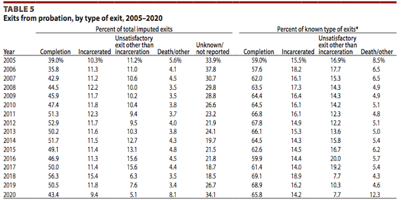 If the recidivism data above is correct, then why are so many probationers (per the chart) suddenly doing so well?