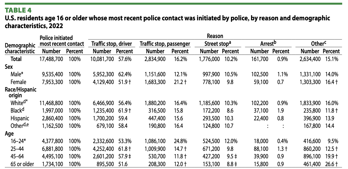 Readers are encouraged to read the full report, Contacts Between Police and the Public, 2022 released in October of 2024. I summarized the report below for your convenience but the charts are important for fully understanding police contacts.
