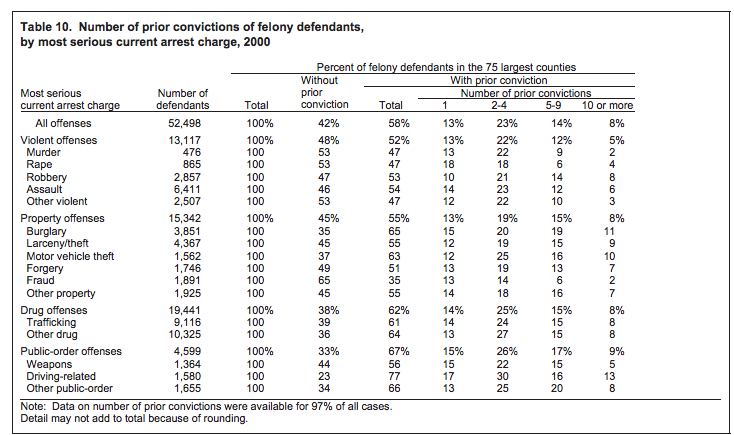 More than three-fourths of those with a conviction record, accounting for 45% of defendants overall, had more than one prior conviction.