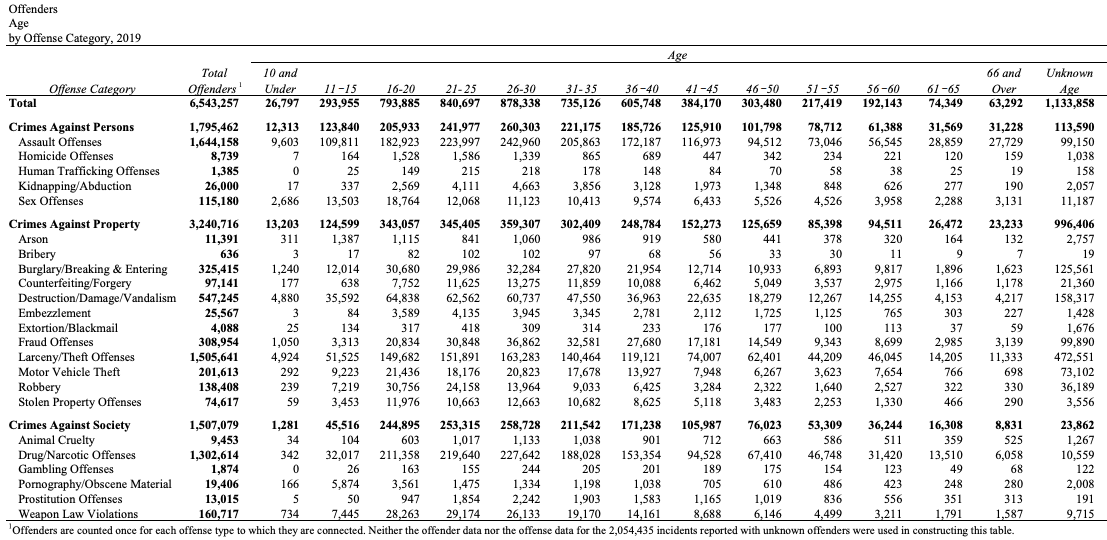 But the data is clear, there were 546,000 older offenders arrested for criminal activity in 2019 (the latest available data from the FBI-an admitted undercount).