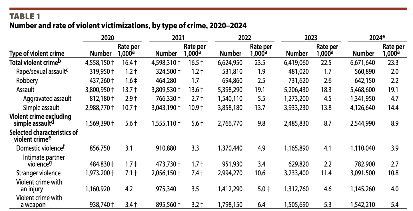 The new NCVS survey for 2024 states that rates of violent crime remain unchanged.