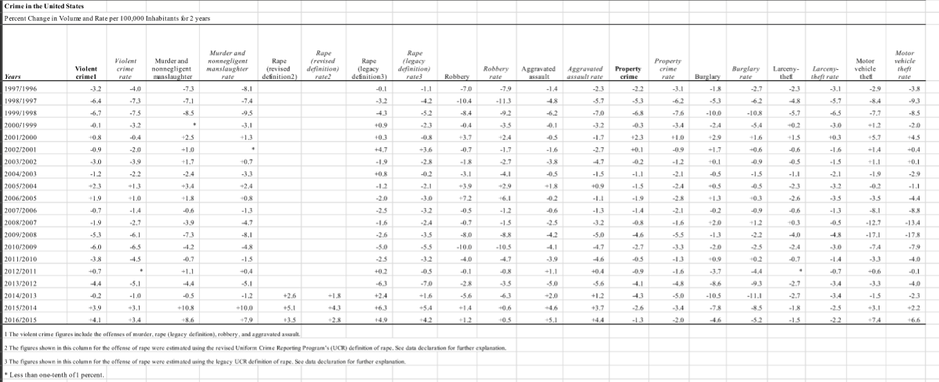 It’s always useful to look at long-range trends to get a sense as to what the future could hold. Twenty years of comparison data from the FBI (below) indicate: