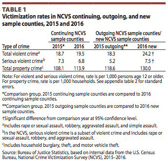 Per the Bureau of Justice Statistics, “To better understand these results, the 2015 and 2016 victimization rates for new and continuing sample counties were examined separately.”